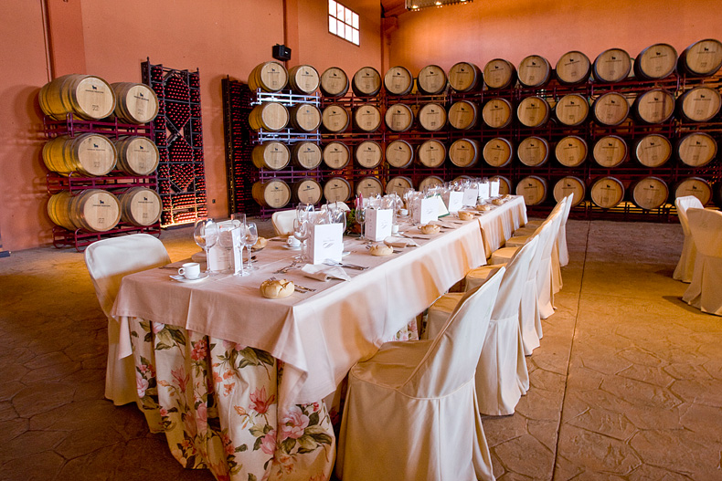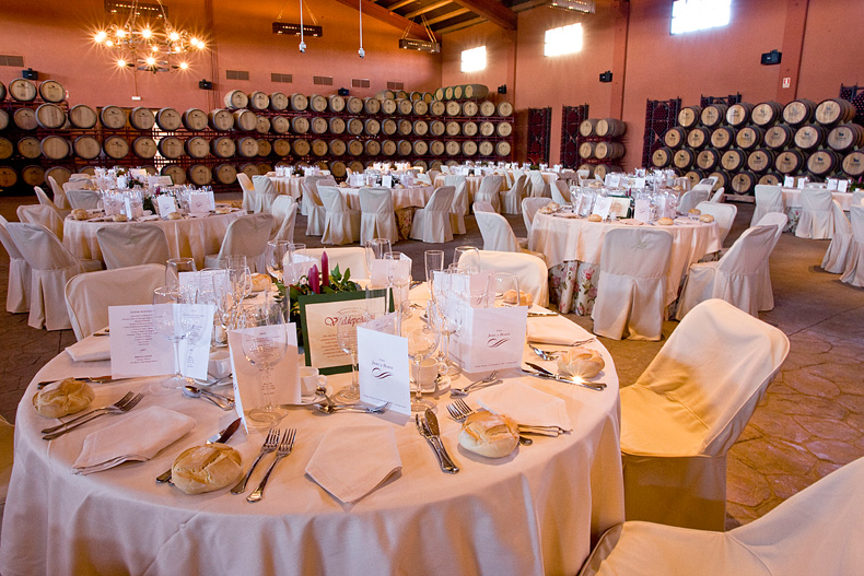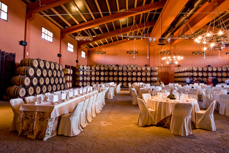 700 barricas de roble americano y más de 40.000 botellas de vino rodearán su boda o evento de una atmósfera diferente y elegante.